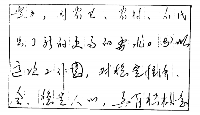 这种人的笔迹特征是:字的笔画坚实有力,有棱有角,且运笔迅疾,特别是垂直笔画,力度很大;竖画穿横画,横的左半部极长,右半部特短;人字头写成“入”、“入”等形状;走之底的点画本应先写,却由捺画收笔时折而向左上斜穿全字补出;平撒写成短横或侧点;就单字来看,有的人把字写得头重脚轻,成“▽”形;有的人把字写得头轻脚重,成“△”形;签名时往往比正文字迹写得大而高,且极具力感;字行平直,不见弯曲;字头有的向左倾斜,有的向右倾斜,有的忽左忽右;字形奇特怪异;如用硬笔,这种人写字往往以腕枕案,小指悬空,运笔倒也酒脱空灵;还有的颠倒笔序、倒下笔或丢笔落画,甚或以一笔代多笔(图262、263、264、265)。